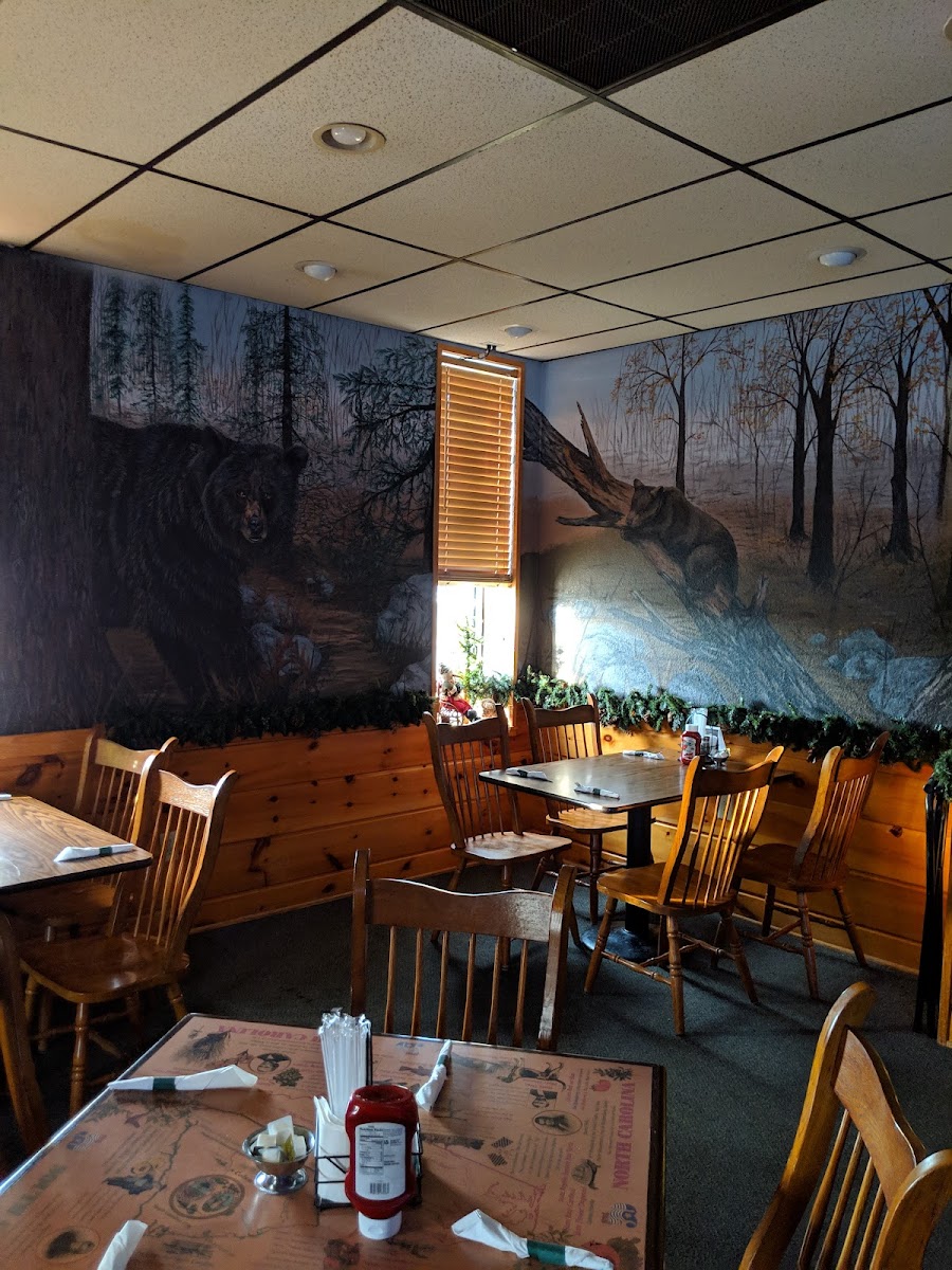 Small town restaurant with delicious home-made food. Salad bar with many options. Brightly colored nature murals dot the walls. The soup and dessert (Strawberry Schaum Torte) were exceptional!